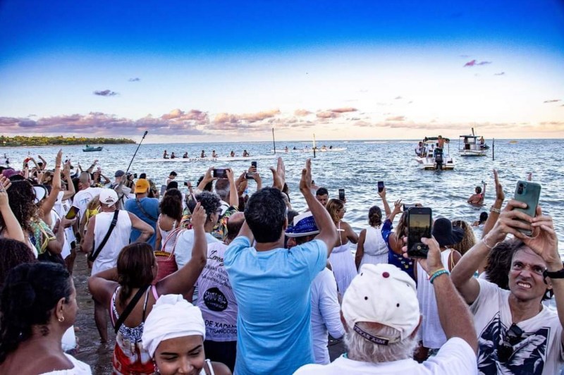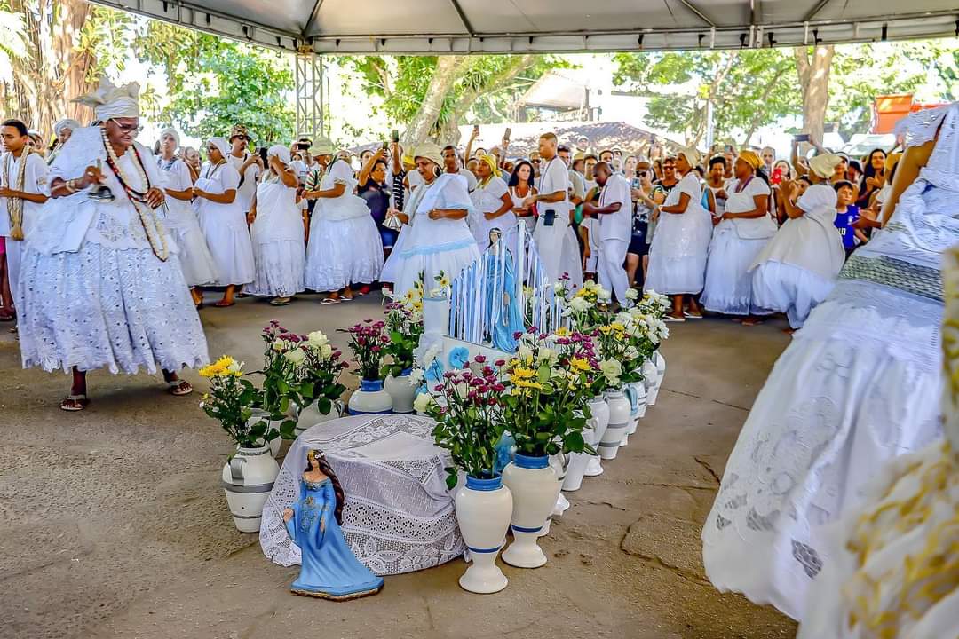 O Babalorixá do Ilê Axé de Xapanã (Trancoso/Sapirara), José Luíz, iniciou as manifestações das tradições religiosas de matriz africana, com preces, banhos de pipocas e de alfazemas, na Praça São Brás. O cortejo com a imagem chegou à Igreja Nossa Sra d’Ajuda ao som de xires, atabaque, timbau, tambores e agogô. Na Praia dos Pescadores, depositaram oferendas, repletas de rosas brancas perfumadas e mimos, em vários balaios, levados ao mar.
