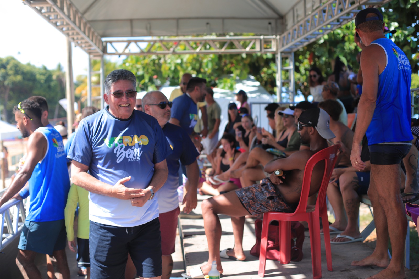 De acordo com o secretário, muitos campeonatos são pagos, e a prefeitura de Porto Seguro, por meio da Secretaria Municipal de Esportes e Lazer, trouxe o Projeto Verão do Bem, em uma megaestrutura ao ar livre, com mesa de frutas, equipe de profissionais de saúde e boa música.