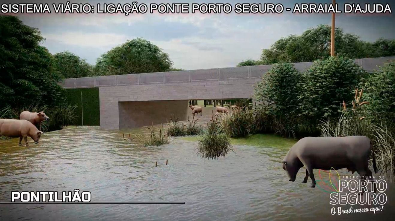 Para escolher a localização da ponte, foi realizado um estudo que levou em consideração a parte econômica, mais, principalmente a parte ecológica e a praticidade, desta forma, os estudos apontaram para a região da Universidade Federal UFSB. A obra irá aproveitar uma estrada rural já existente que liga Às margens do Rio Buranhém ao 'Trevo Arraial d´Ajuda com Trancoso.
