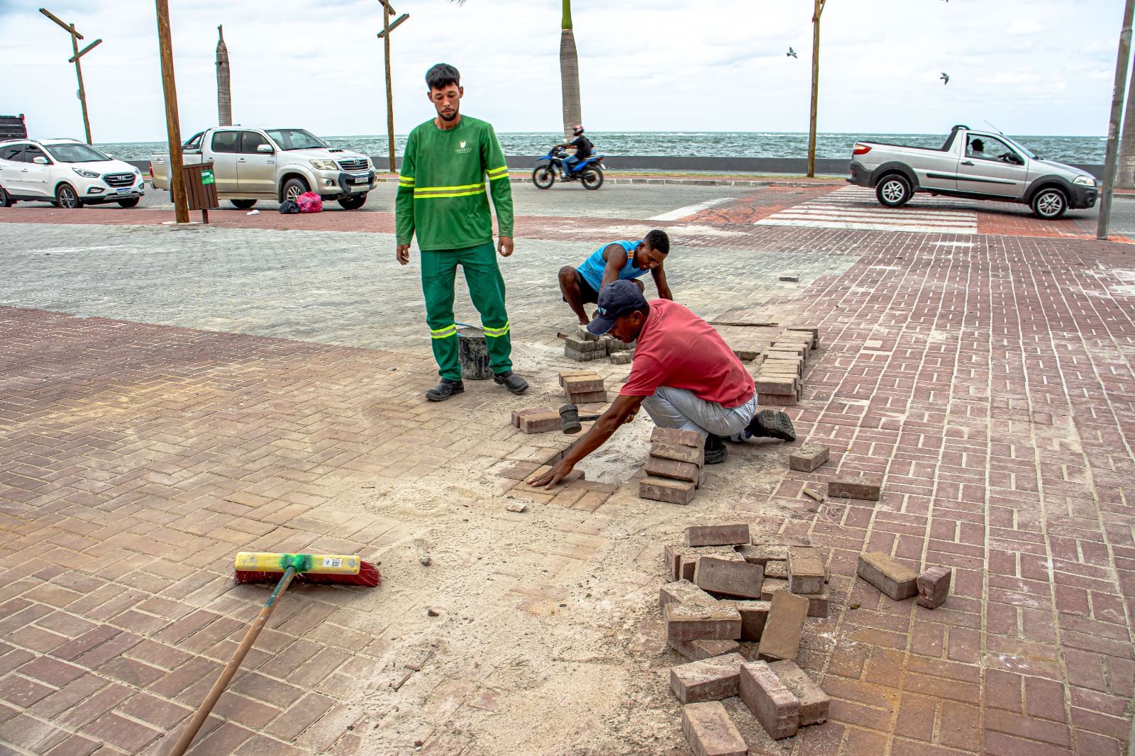 Enquanto avançam as obras de drenagem, segue também em ritmo acelerado o assentamento do novo piso em bloquete, finalizando mais uma etapa desse grandioso projeto.