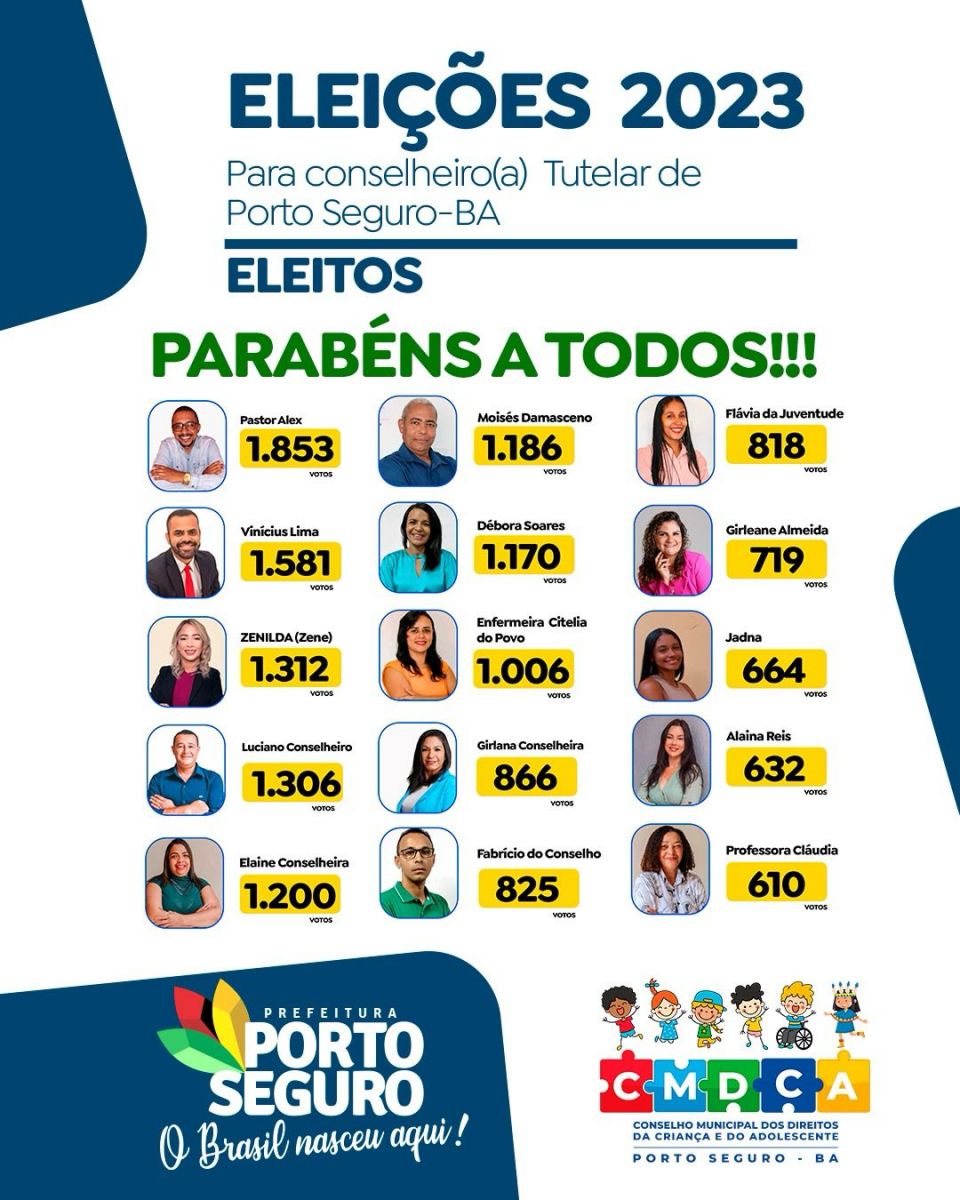 O número de votos computados chegou a 19.528 em uma quantidade bastante expressiva para a escolha, demonstrando o engajamento da população neste processo democrático e unificado, que foi coordenado pelo Conselho Municipal dos Direitos da Criança e do Adolescente (CMDCA) de Porto Seguro com fiscalização do Ministério Público e suporte do Tribunal Regional Eleitoral e da Secretaria Municipal de Assistência Social.