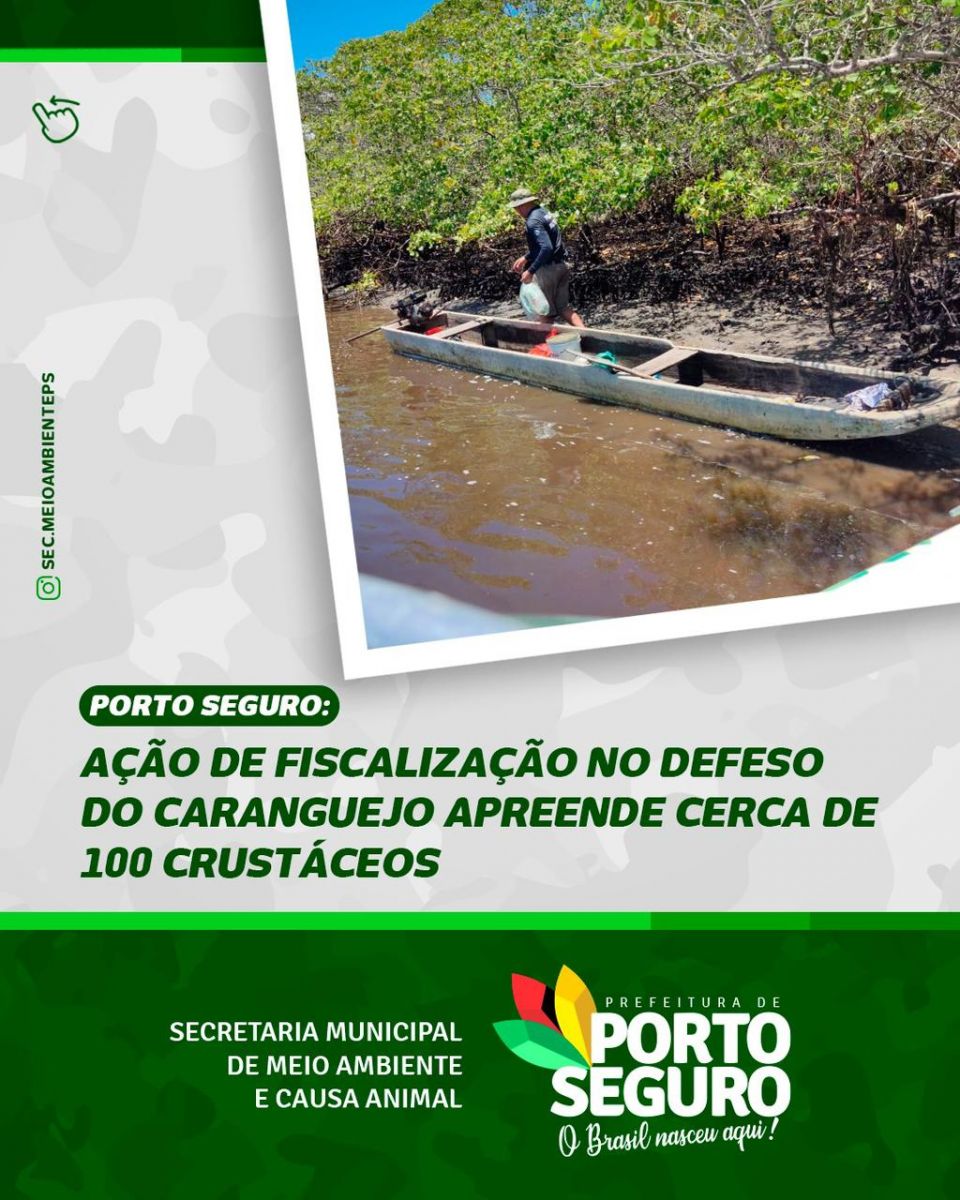 Em atenção ao período de defeso do caranguejo uçá, agentes da fiscalização ambiental de Porto Seguro, em conjunto com agentes do Instituto do Meio Ambiente e Recursos Hídricos (INEMA) e da Companhia de Polícia de Proteção Ambiental (CIPPA), realizaram ação de combate à captura irregular da espécie.