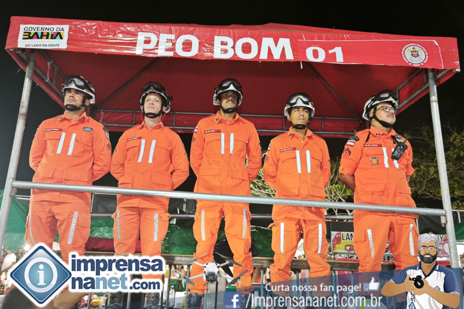 Segurança reforçada e visível: A tranquilidade da noite contou com forte atuação das forças de segurança, incluindo guarnições do 8º Batalhão da Polícia Militar e equipes da Polícia Civil da Bahia, posicionadas estrategicamente ao longo do circuito.